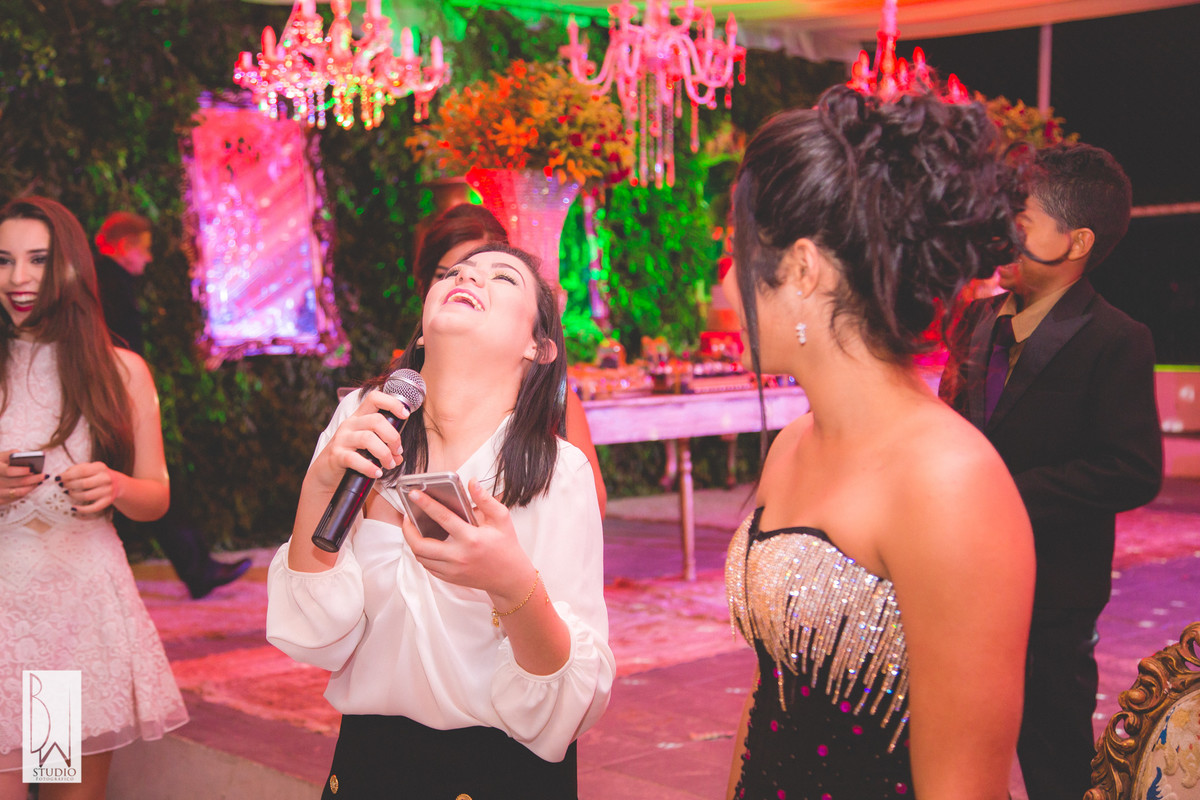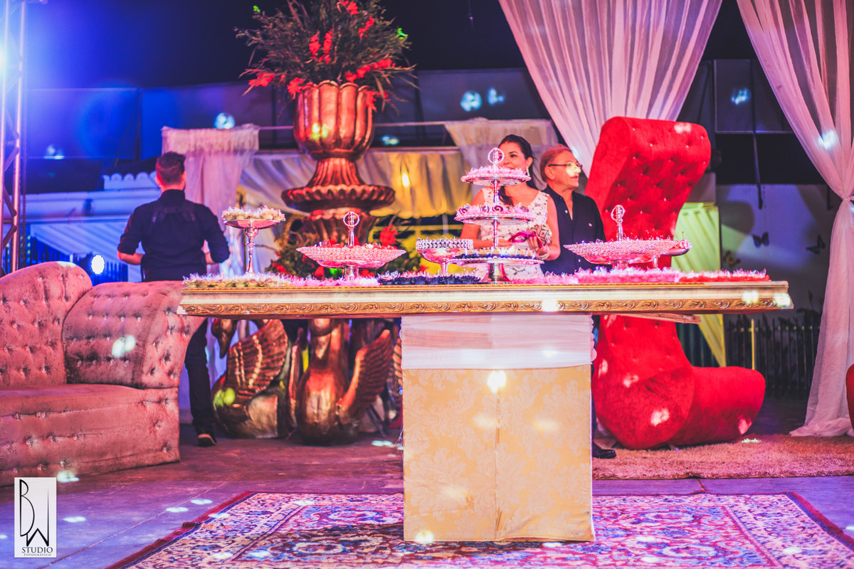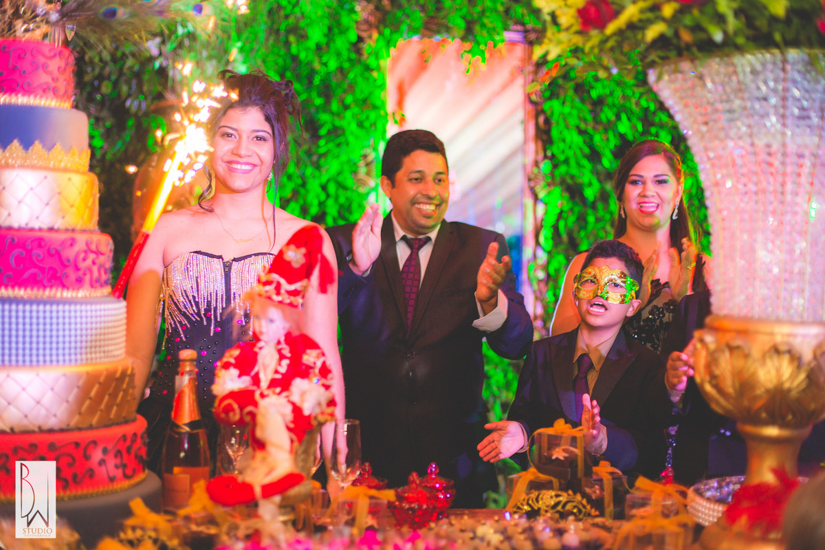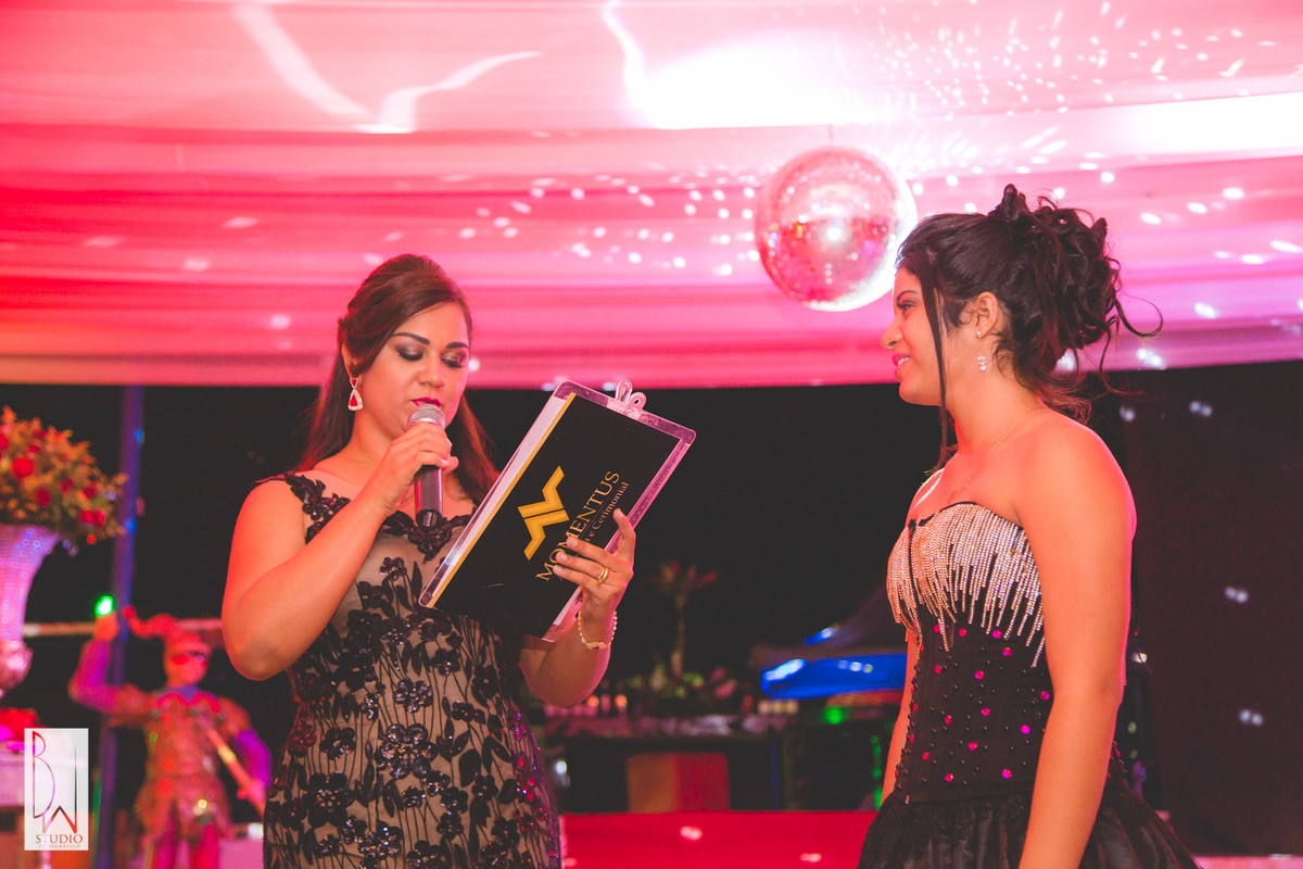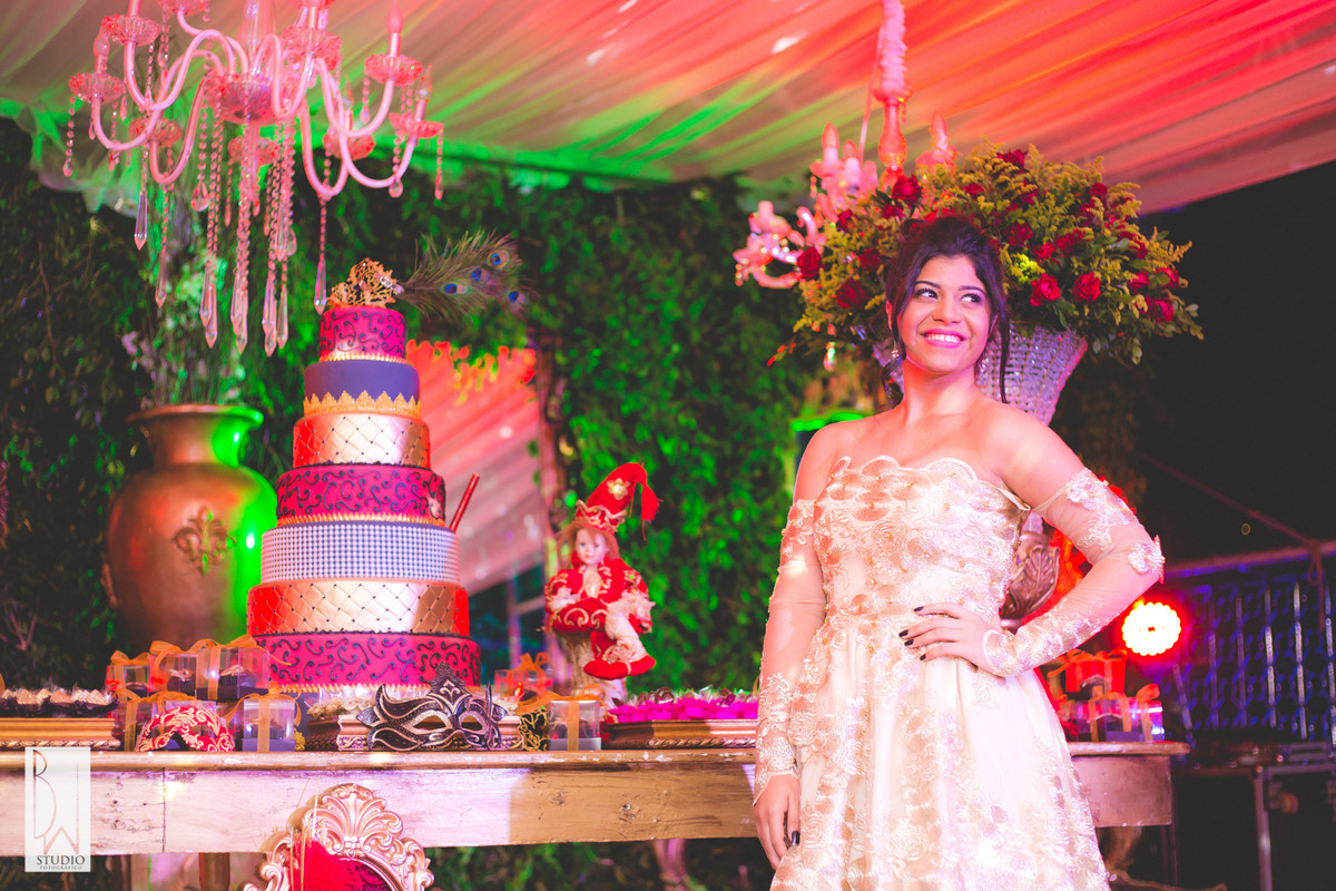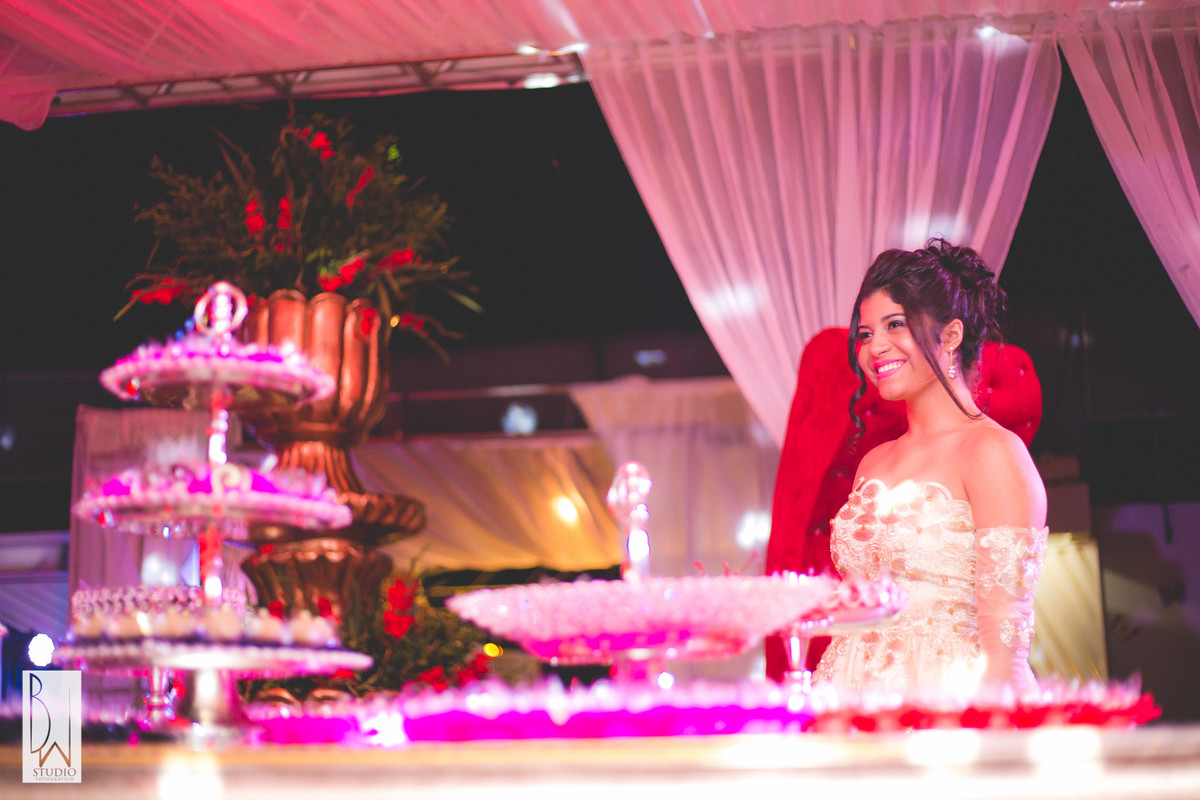 A festa estava linda, cada detalhe pensado com muito carinho para tornar inesquecível cada segundo daquela noite, a decoração e buffet da Celebrar Eventos, o cerimonial,da Momentus, a iluminação de Alcelio, tudo em maior sintonia para trazer à realidade esse sonho tão esperado por ela e sua família!