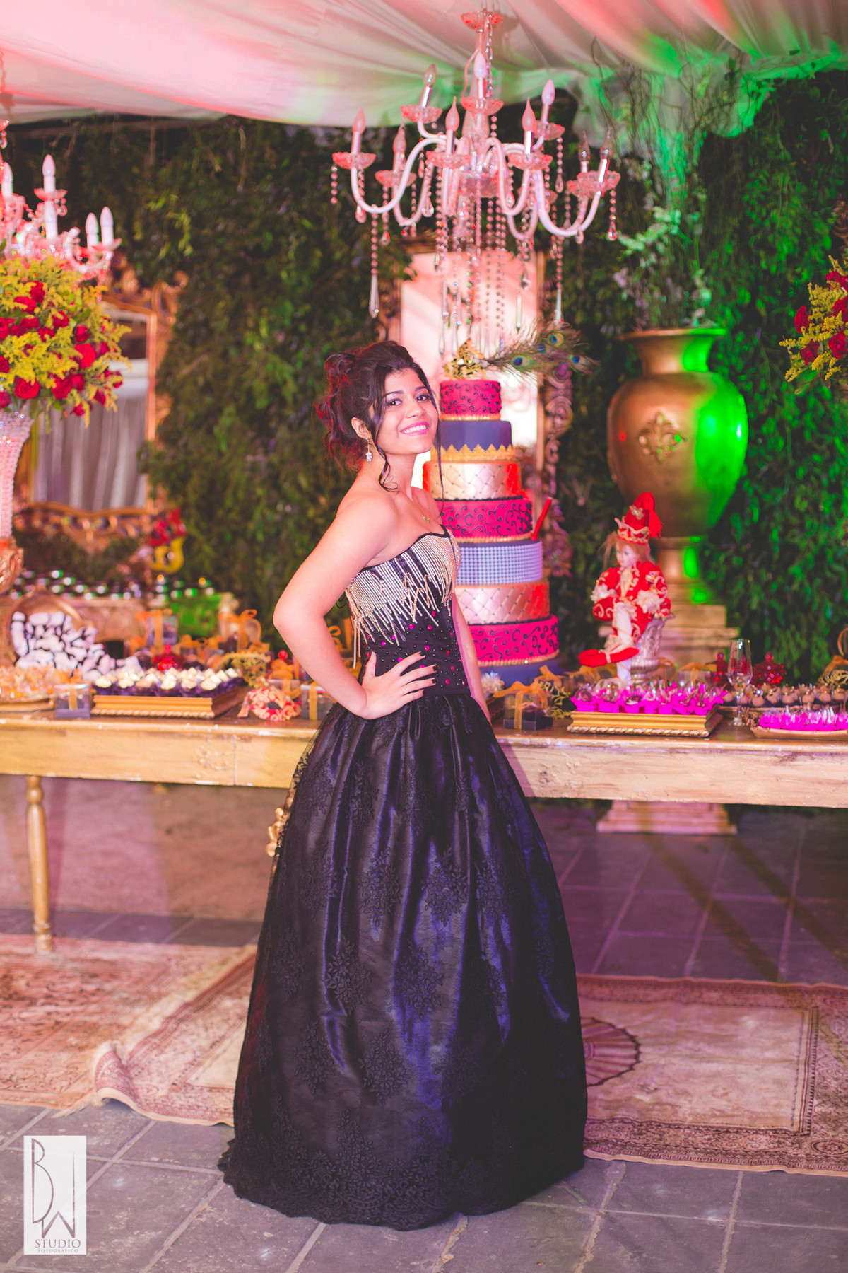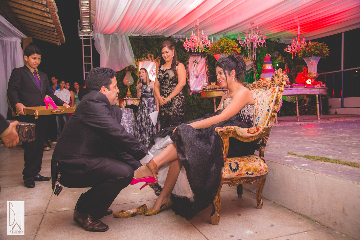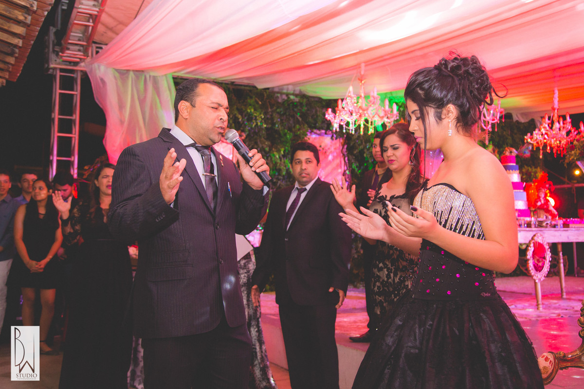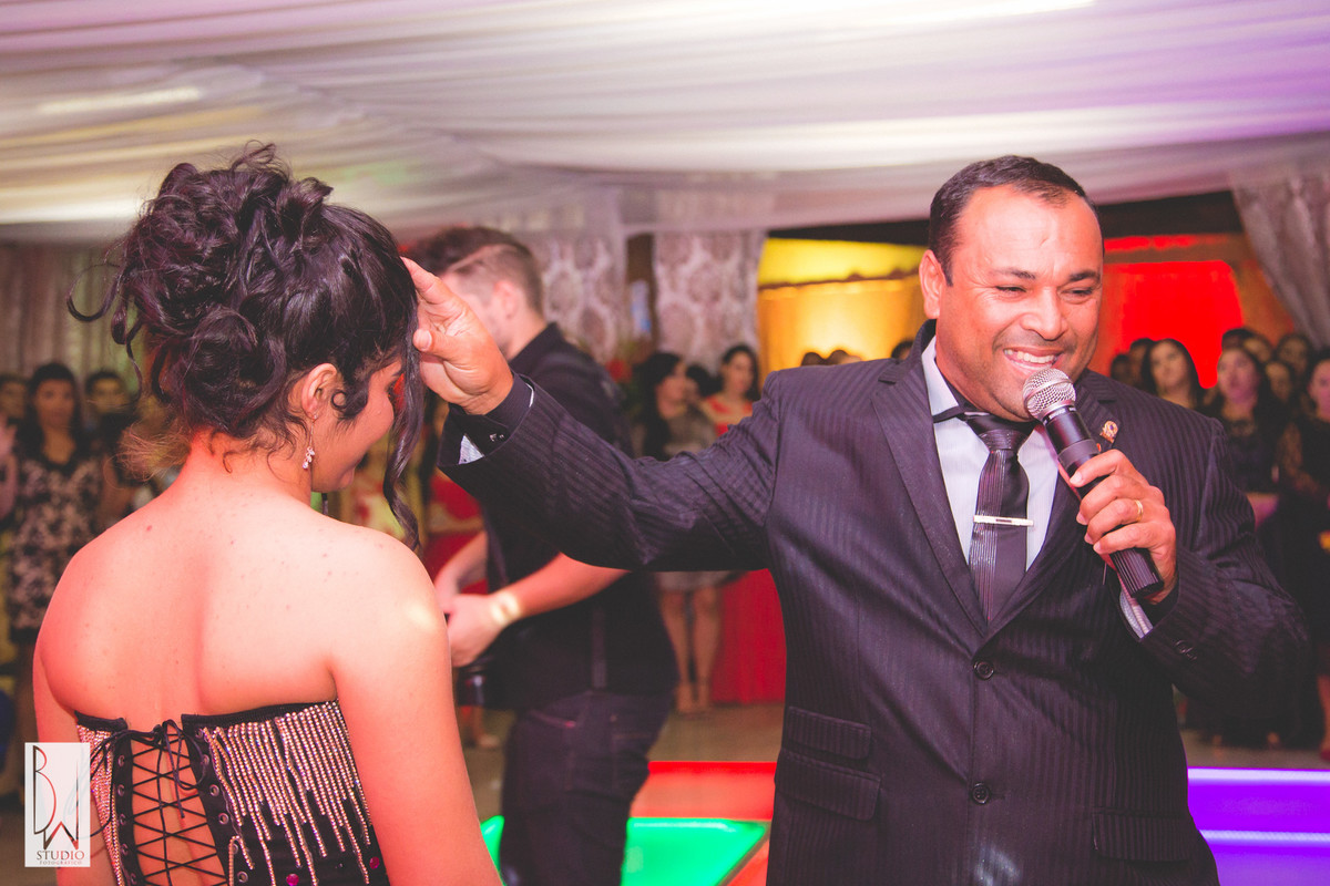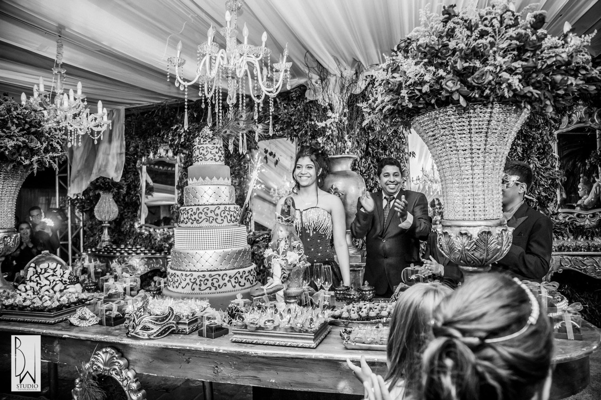 A festa estava linda, cada detalhe pensado com muito carinho para tornar inesquecível cada segundo daquela noite, a decoração e buffet da Celebrar Eventos, o cerimonial,da Momentus, a iluminação de Alcelio, tudo em maior sintonia para trazer à realidade esse sonho tão esperado por ela e sua família!